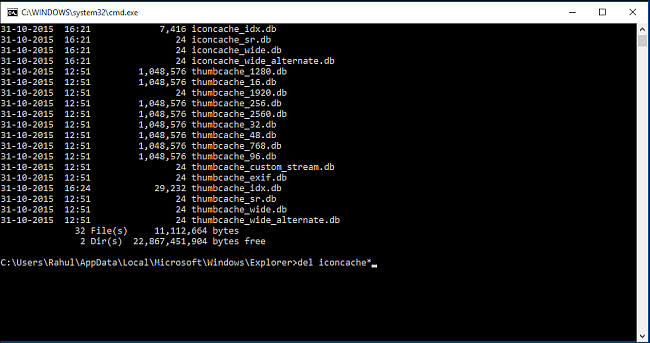 be included in the delete operation. That should delete all the icon cache files.
